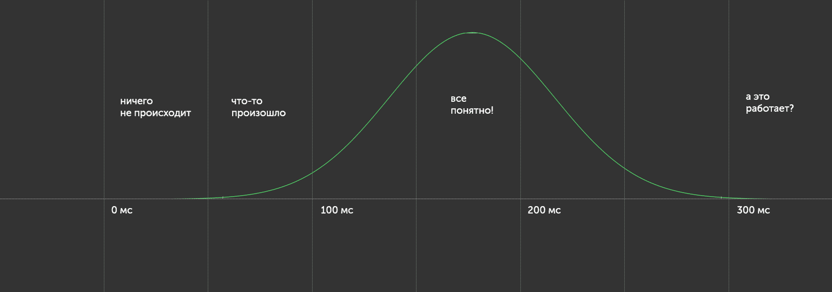 The total time of realization takes 150-200 ms. This is the perfect time for full interface elements reactions.