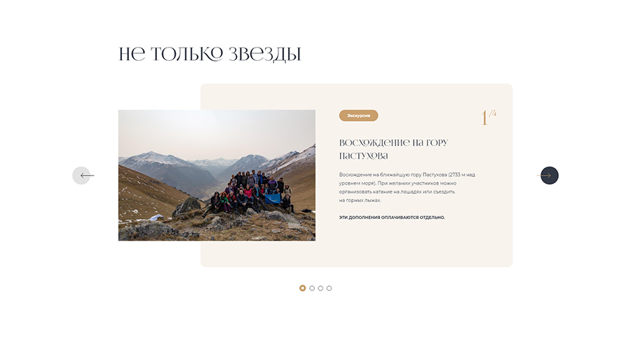 We have offered a proven approach — a combination of colorful product presentation and clear navigation. The structure of the website is quite simple: it is a plain catalog, and the main emphasis we’ve put on the detailed page of each trip in which we disclose: