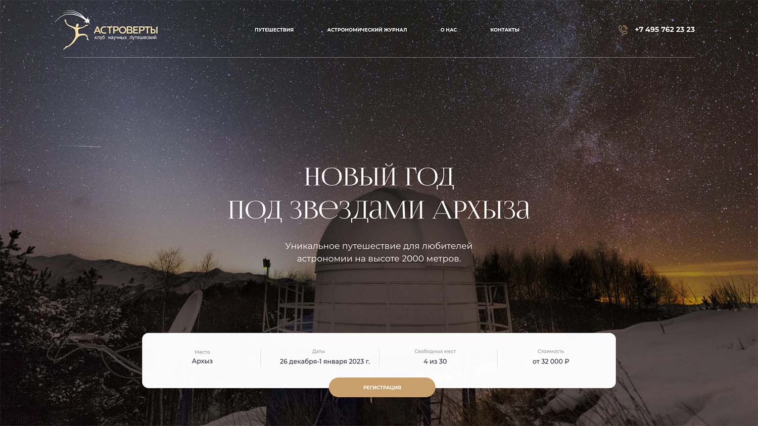 We created a website for “Astroverts”, the scientific travelers’ club, which inspires people to rediscover traveling, gain practical experience in astronomical observations and learn more about the world where we live.