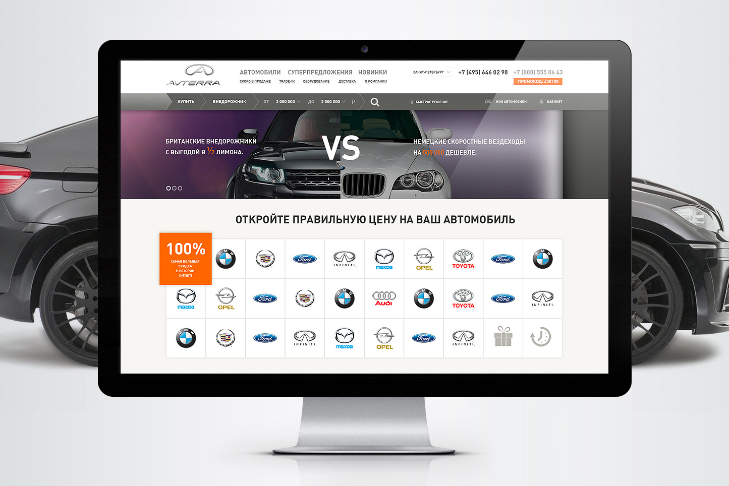 Avterra is an independent car dealer. Since 1996, partnerships with official dealers in different parts of Russia have been allowing Avterra to offer their clients the most favourable purchase terms. We led the strategy, concept, and design for the new website.