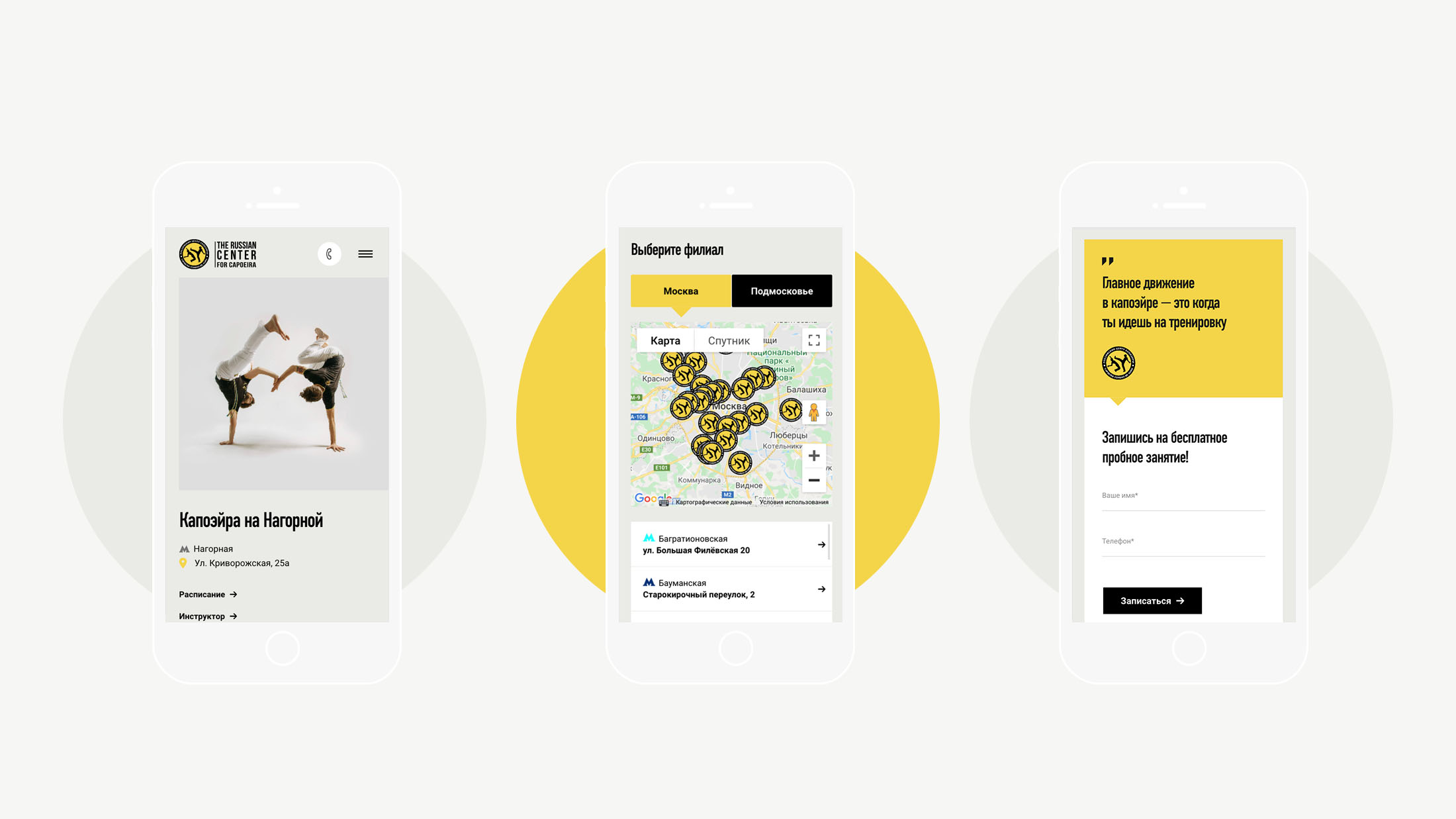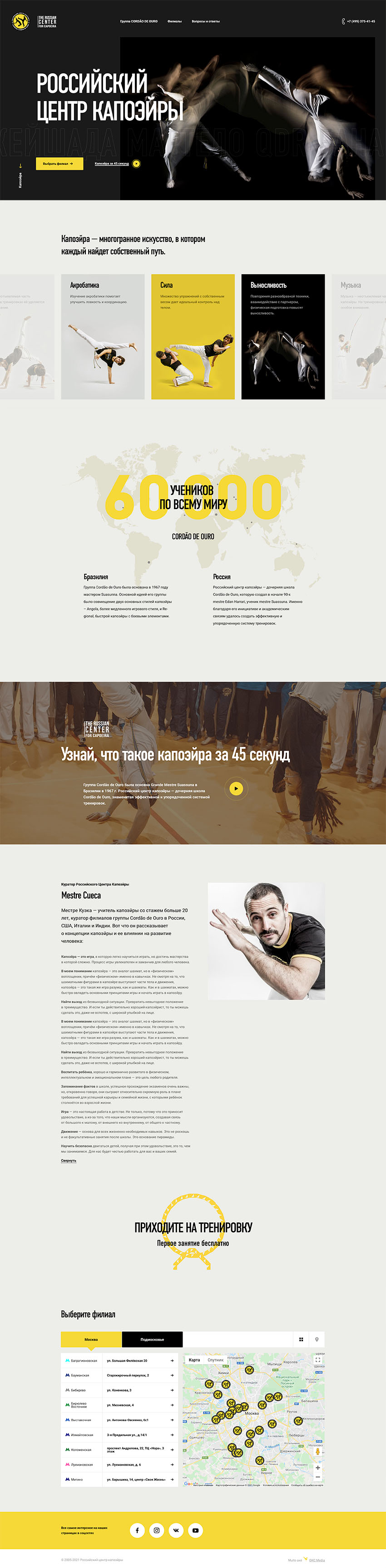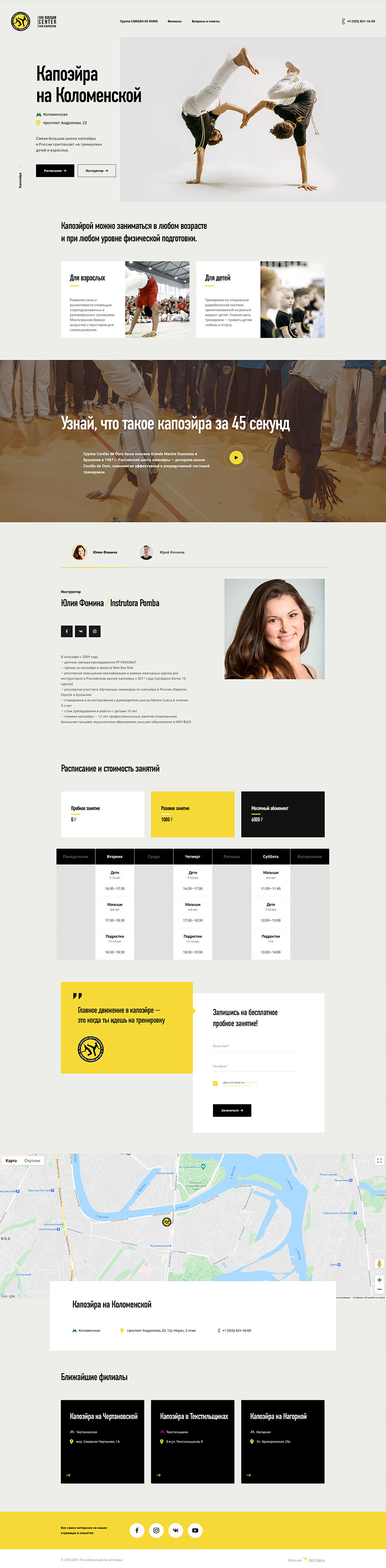 Our goal was to make a simple and attractive website for the Russian center for capoeira. The website aimed to attract people looking for a sports facility near their homes.