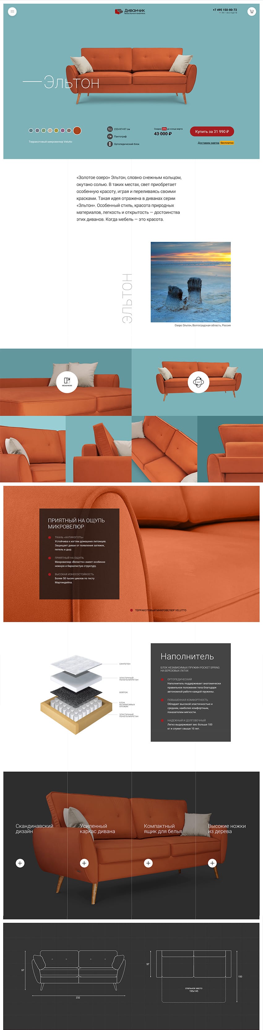 Every single product page is a microsite of the sofa, where a customer can get to know it perhaps better than in the showroom: