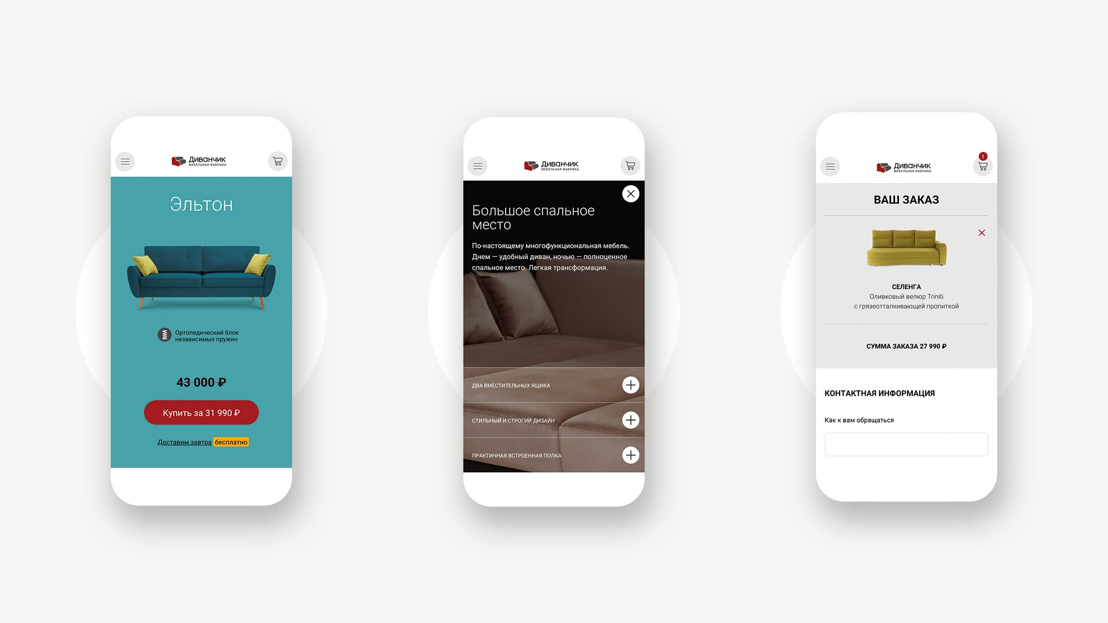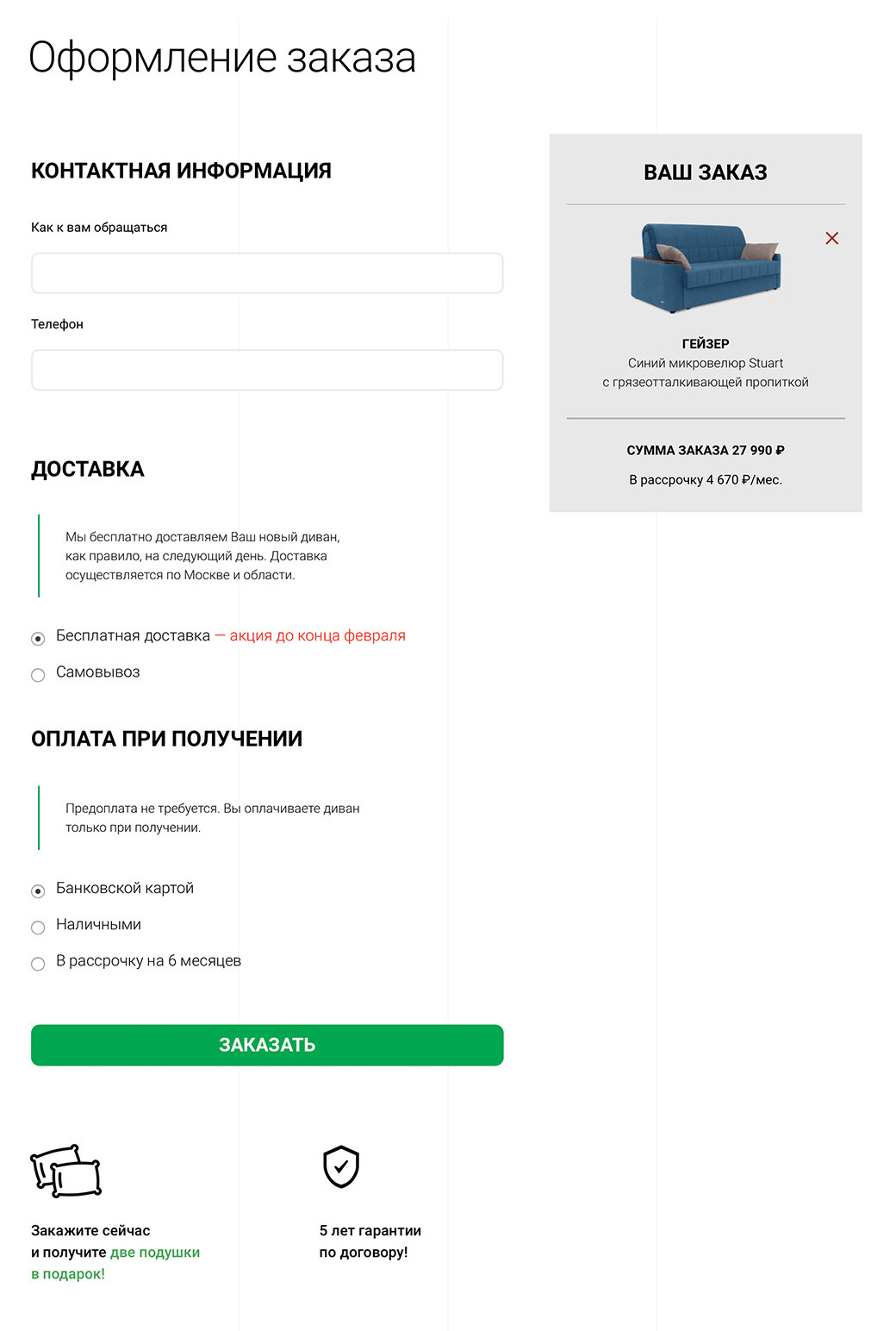 In 98% of cases customers prefer buying just a single sofa, and this fact helped us to increase the conversion rate by combining the basket and order submission form in one simplified page.