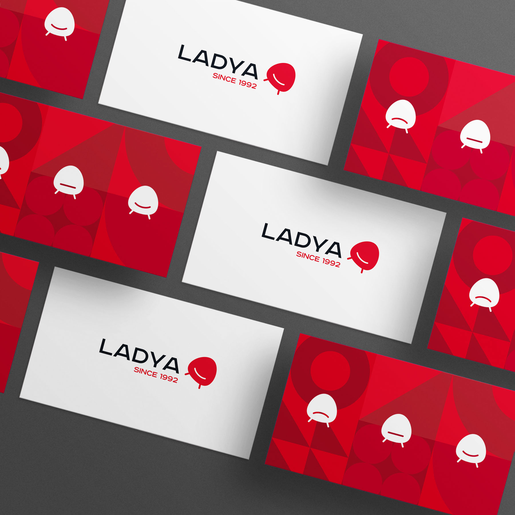 Our idea was to move away from the search of visual association with a word “LADYA”: the rook, the home or the ship. Instead, we offered the clear visual message, the mathematic equation “LADYA = furniture”. After numbers of iterations, we proposed the idea of a symbol in the form of a smiling chair. The minimalistic symbol gave us great potential for development.