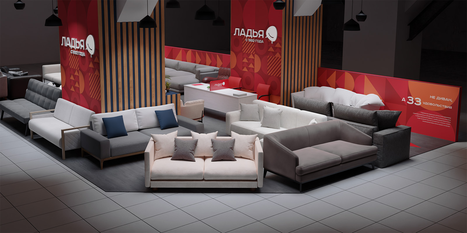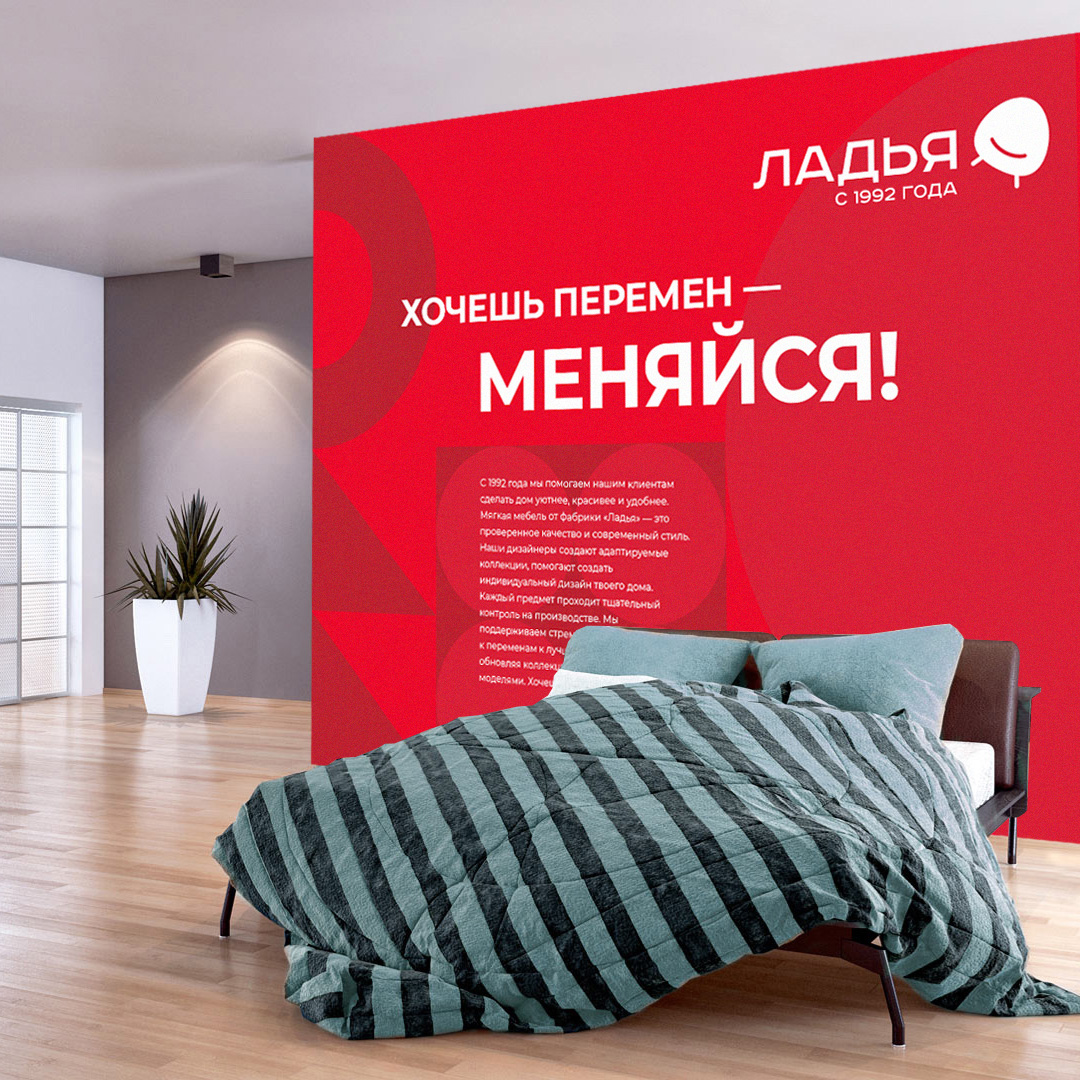 Ladya is one of Russia's oldest and most famous furniture factories, founded in 1992. We were asked to relaunch the brand, making it relevant and up to date while, at the same time, reflecting its history. We have developed a new brand identity and transformed the interior design of showrooms.
