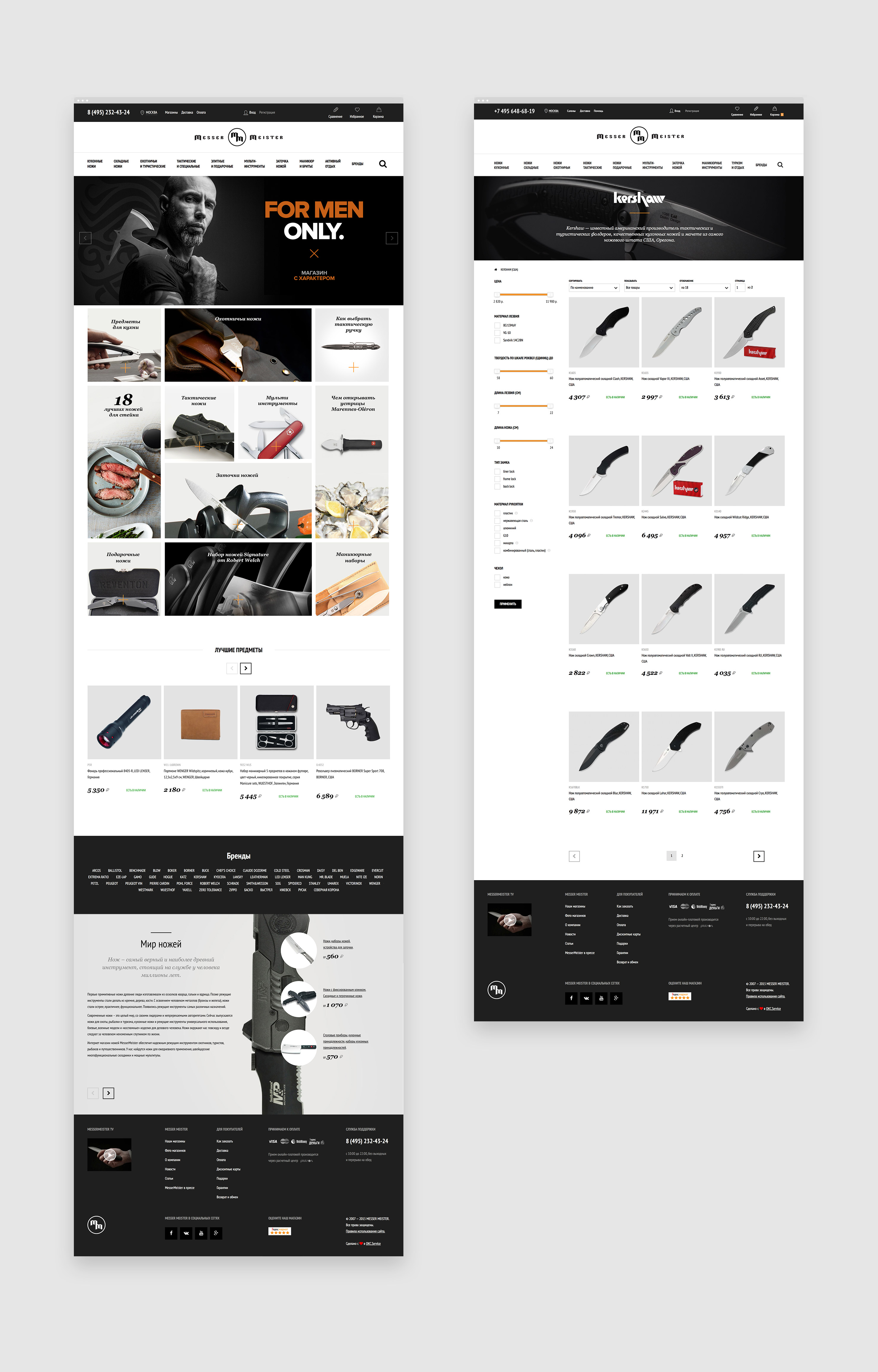 The website was created for two main audience groups: experienced knife connoisseurs who are already familiar with knife manufacturers and technology, and amateurs that who mainly interested in product usage and its aesthetic appeal.