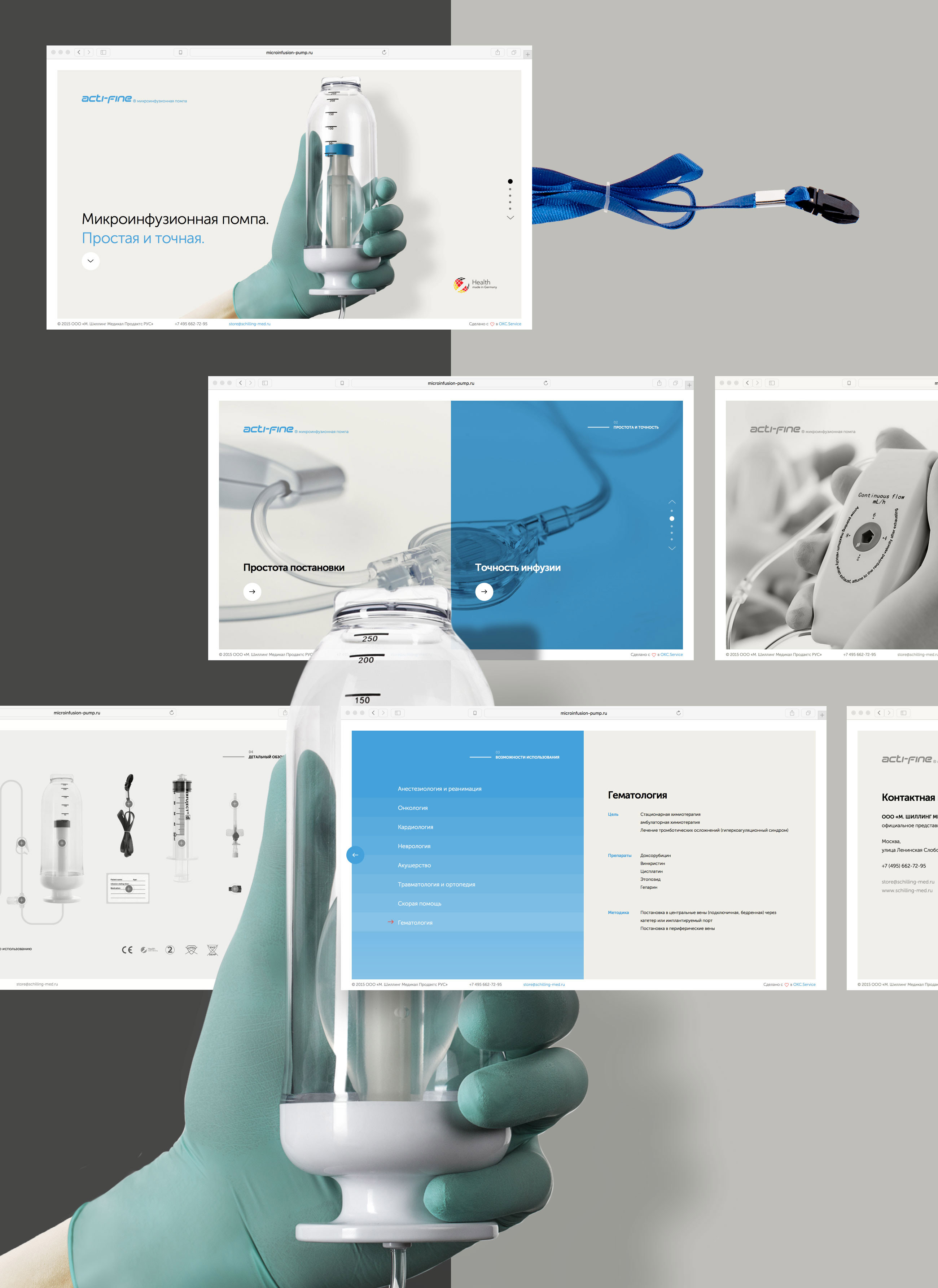 It is not uncommon for good products not to have enough high-quality images. We did the photoshooting, image retouching, and detail rendering for the website. Our goal was to convey the sensation of a flawless product that one can “touch”. That's why a doctor's hand with an infuser became the focus image.