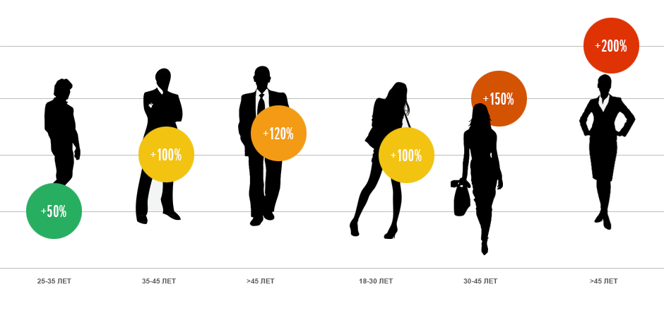 Then we discovered an interesting phenomenon: the highest order conversion was shown in the male population from 25 to 35 years old, yet this demographic group was not the largest in relation to page views. Consumer behavior analysis has shown that there was a big gap in conversion among women over 30 years of age. This was a significant loss, since female visitors represent 60% of the audience.