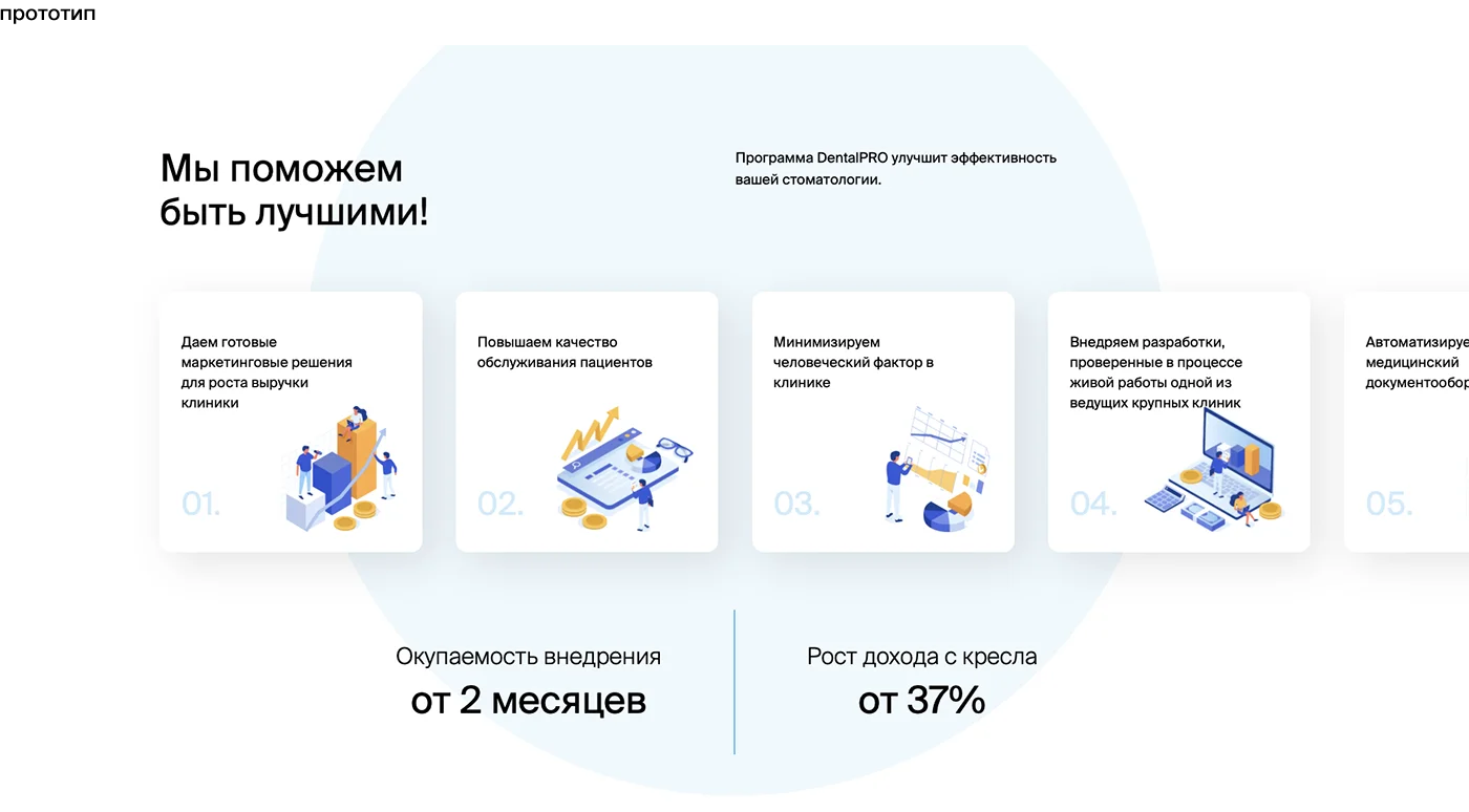 Новый сайт DentalPRO стал полноценной цифровой точкой входа в продукт: он отражает глубину возможностей системы, демонстрирует конкурентные преимущества и работает на разные типы пользователей — от врача до владельца клиники.