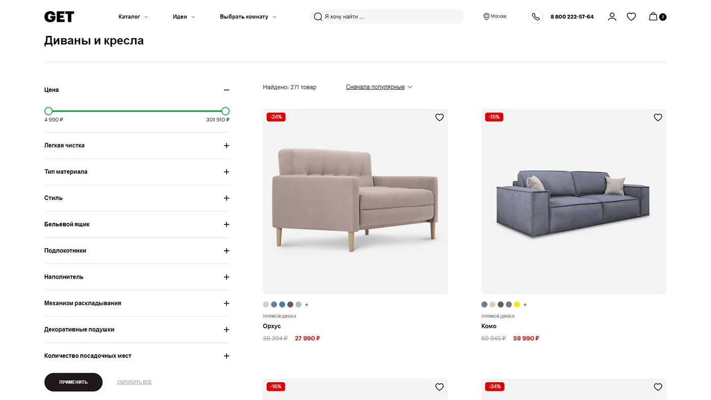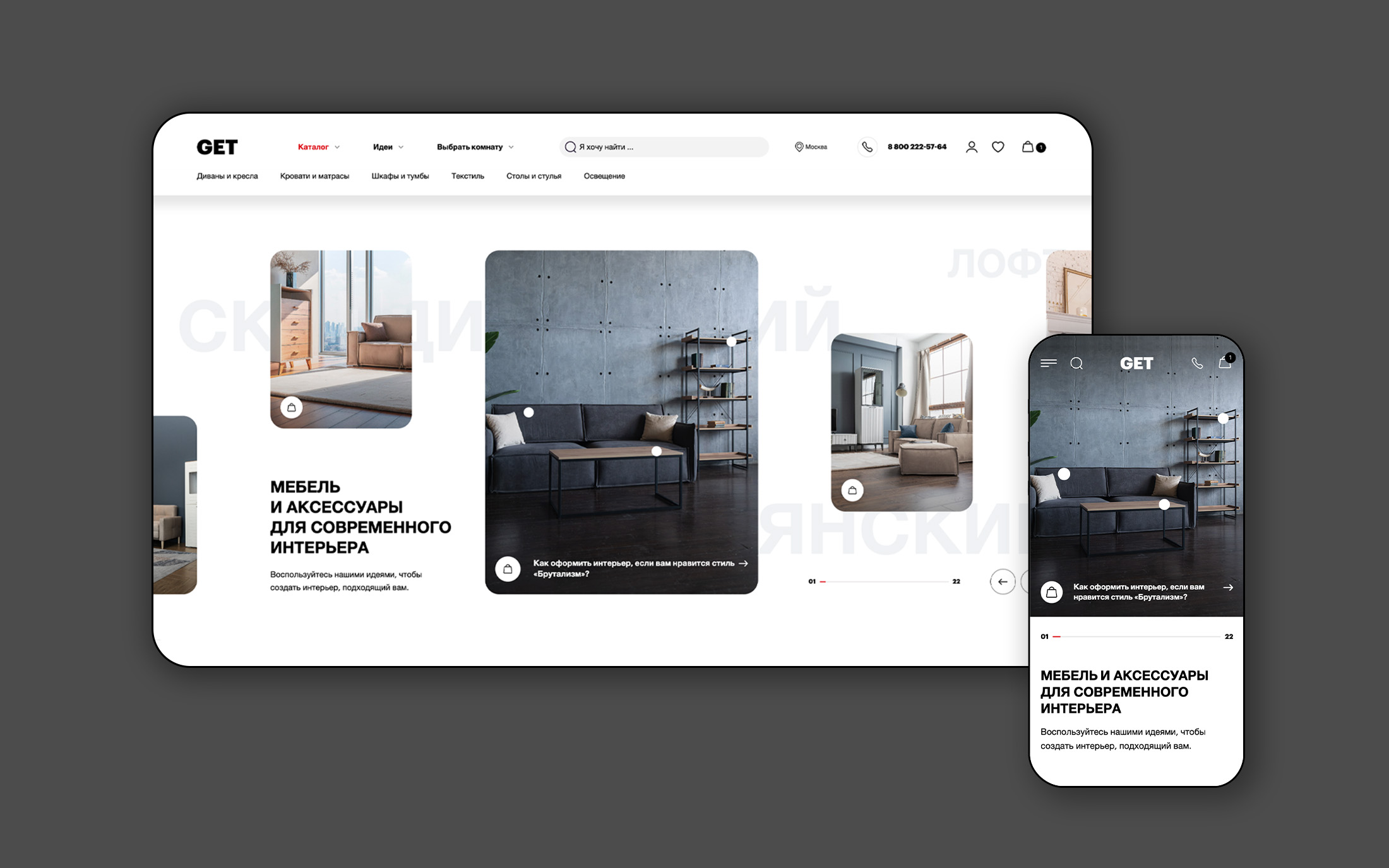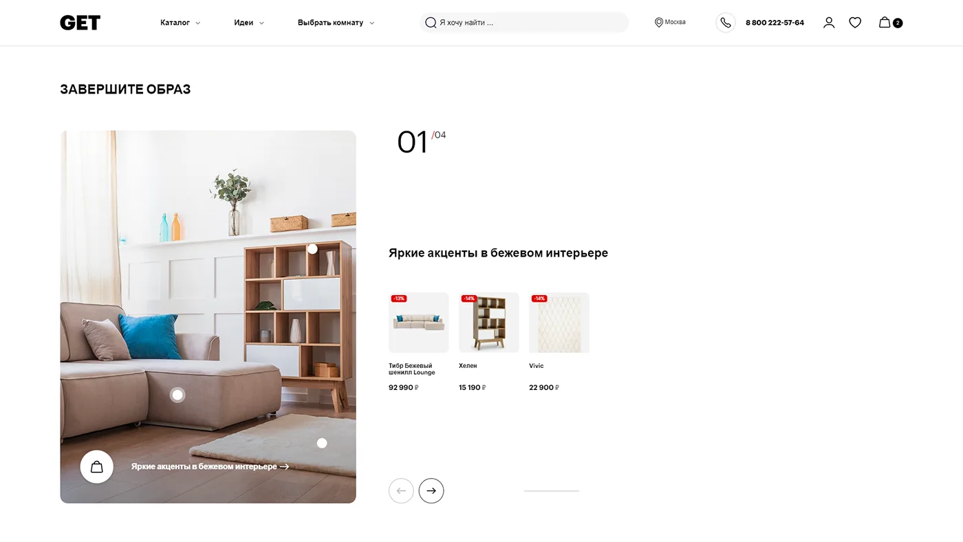 Вместе с командой интернет-магазина GET.ru мы объединили функциональность, дизайн и вдохновение, чтобы помочь покупателю мебели создать интерьер своей мечты.