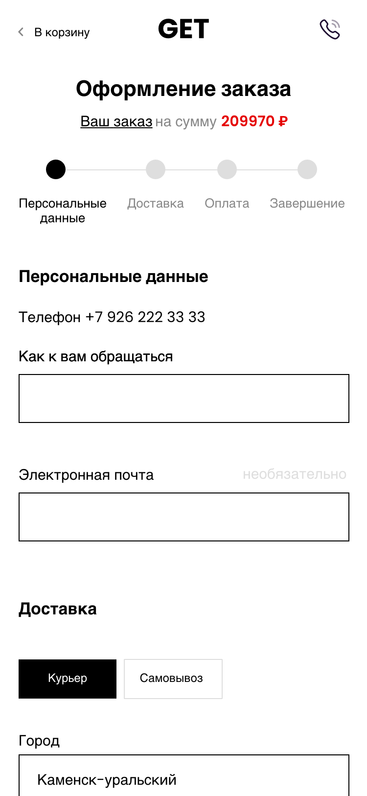 Отдельно мы проработали сценарий для случая, если SMS с кодом подтверждения на телефон не доходит. Если пользователь уже совершал покупки, ему будут предложены ранее использованные контактные данные, адрес доставки и способ оплаты.